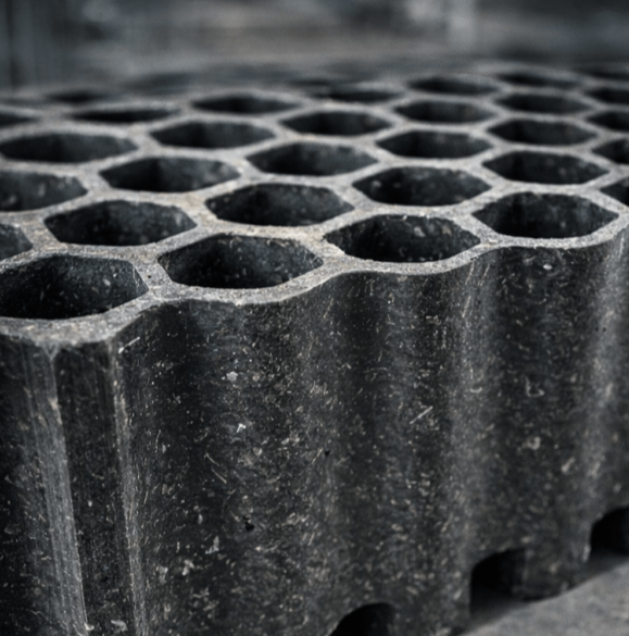 Die optimierte Wabengeometrie verteilt Lasten gleichmäßig und verhindert Punktbelastungen. Maximale Stabilität bei minimalem Materialeinsatz.