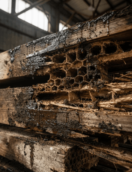 Holz ist ein Naturprodukt mit inhärenten Qualitäts-schwankungen. Tragfähigkeit und Maßgenauigkeit variieren, was Prozessicherheit beeinträchtigt.